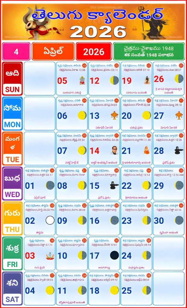 Telugu Calendar April 2026