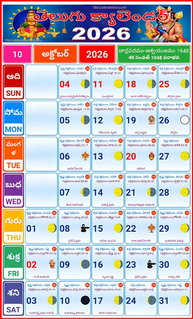 Telugu Calendar October 2026